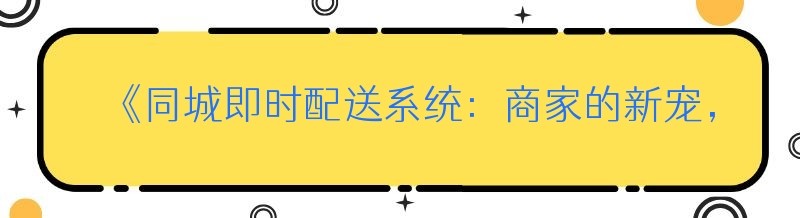 编辑 《同城即时配送系统:商家的新宠,你了解多少?》