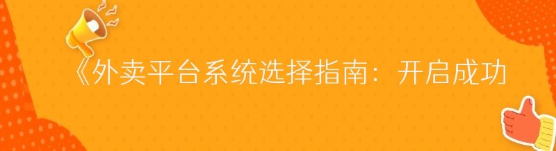 编辑 《外卖平台系统选择指南:开启成功外卖事业的关键一步》