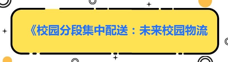 《校园分段集中配送:未来校园物流的新趋势与前景剖析》