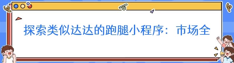 探索类似达达的跑腿小程序:市场全景与选择指南