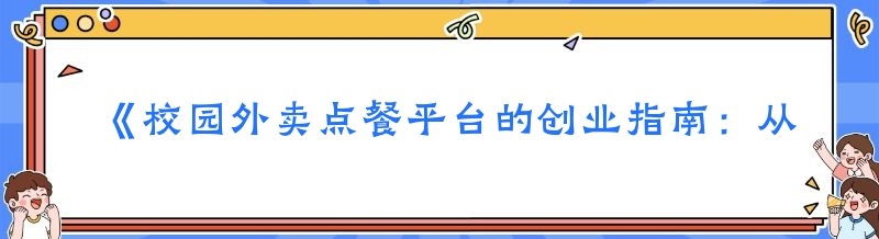 《校园外卖点餐平台的创业指南:从筹备到运营》