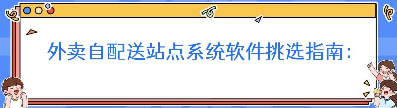 外卖自配送站点系统软件挑选指南:解锁高效运营的关键