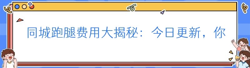 编辑 同城跑腿费用大揭秘:今日更新,你需要知道的那些事儿