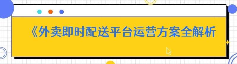 《外卖即时配送平台运营方案全解析:低成本创业的黄金指南》