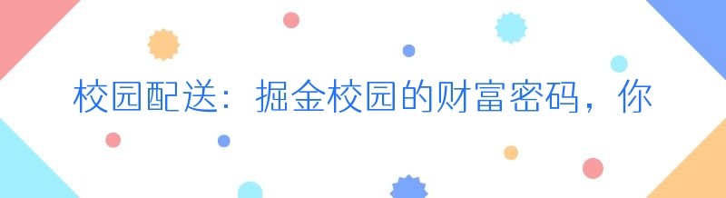 校园配送:掘金校园的财富密码,你掌握了吗?