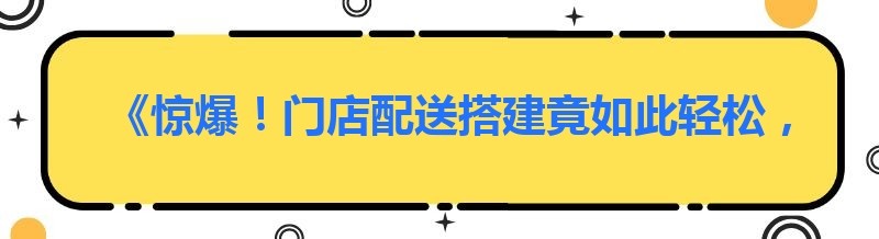《惊爆!门店配送搭建竟如此轻松,你还不知道吗?》