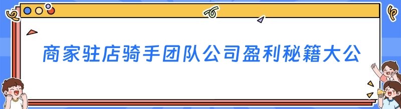 商家驻店骑手团队公司盈利秘籍大公开!新手必知要点