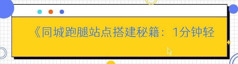 《同城跑腿站点搭建秘籍:1分钟轻松掌握》
