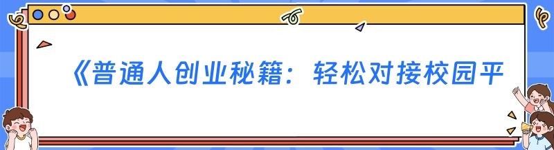 《普通人创业秘籍:轻松对接校园平台,开启财富之路》