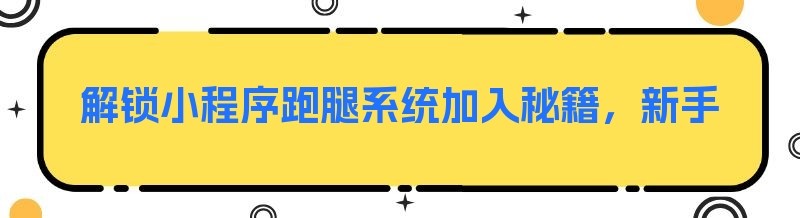 解锁小程序跑腿系统加入秘籍,新手必知要点全在这里!