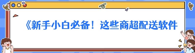 《新手小白必备!这些商超配送软件app让办事轻松搞定》