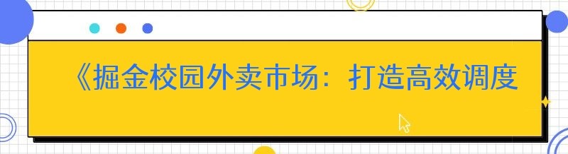 - 《校园外卖配送搭建指南:开启便捷校园生活新篇章》