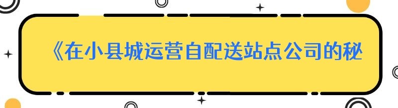 《在小县城运营自配送站点公司的秘籍:效率提升指南》
