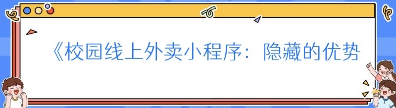 《校园线上外卖小程序:隐藏的优势大揭秘》