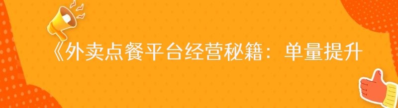 《外卖点餐平台经营秘籍:单量提升全攻略》