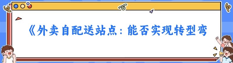 在当今竞争激烈的外卖市场中,自配送站点正逐渐成为一种备受关注的模式。那么,转型做外卖自配送站点是否真的能够实现弯道超车呢?这是许多人心中的疑问。