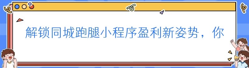 在这个快节奏的时代,人们对于便捷生活的追求愈发强烈,同城跑腿小程序应运而生,成为了众多创业者眼中的新商机。然而,很多人在面对这个新兴领域时,却不知道如何让同城跑腿小程序实现盈利。今天,就让我们一起来揭开同城跑腿小程序盈利的神秘面纱,看看原来可以这样赚钱!