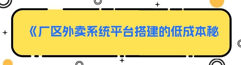 《厂区外卖系统平台搭建的低成本秘籍》