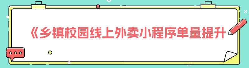 《乡镇校园线上外卖小程序单量提升秘籍大公开》