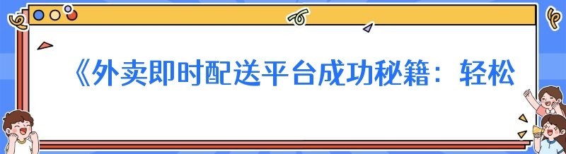 《外卖即时配送平台成功秘籍:轻松上手,一学就会》