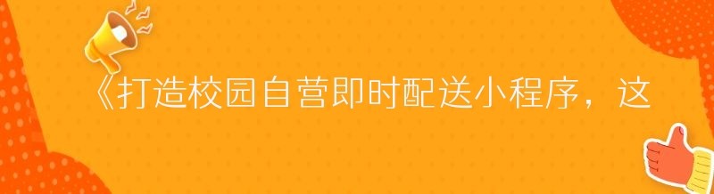 《打造校园自营即时配送小程序,这三步就够了!》
