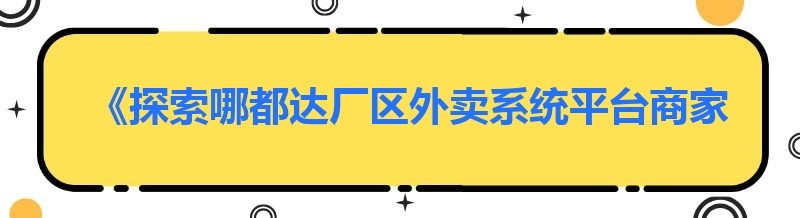 《探索哪都达厂区外卖系统平台商家版的多元功能与优势》