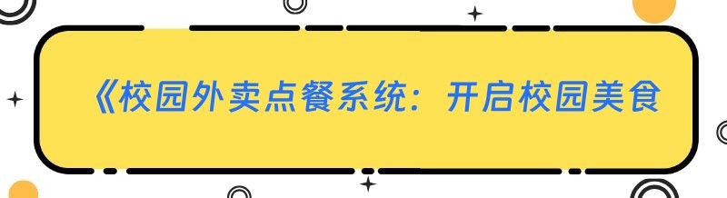 《校园外卖点餐系统:开启校园美食新“食”尚,一个月回本不是梦》