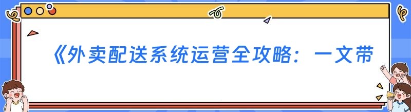 《外卖配送系统运营全攻略:一文带你轻松掌握》