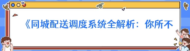 《同城配送调度系统全解析:你所不知道的那些事儿》