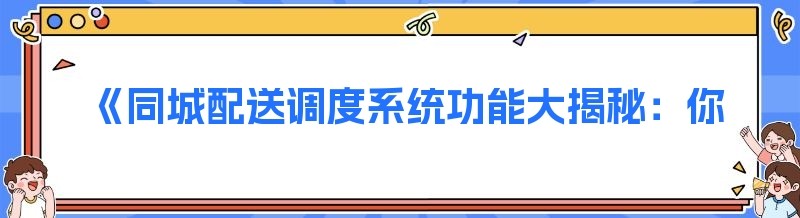 《同城配送调度系统功能大揭秘:你所不知道的真相》