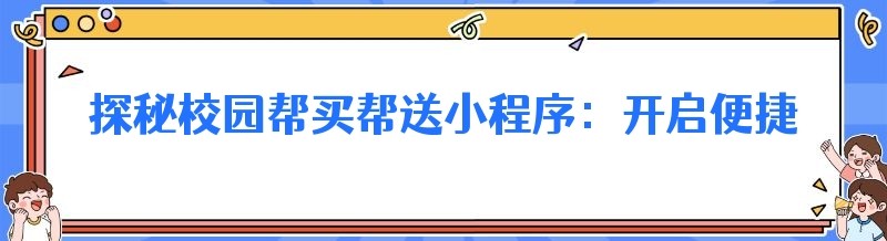 探秘校园帮买帮送小程序:开启便捷校园生活新时代