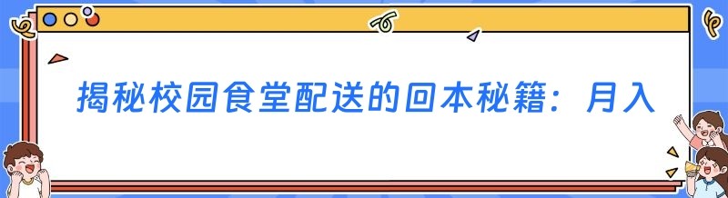 揭秘校园食堂配送的回本秘籍:月入过万不是梦!