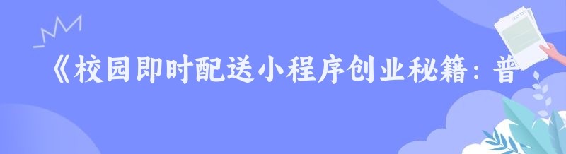 《校园即时配送小程序创业秘籍:普通人也能轻松上手》