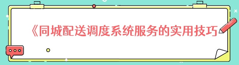 在当今竞争激烈的商业环境中,同城配送调度系统服务对于许多企业来说至关重要。它不仅影响着货物的及时送达,还关系到客户的满意度和企业的声誉。以下是一些关于同城配送调度系统服务的压箱底技巧,希望能为您带来帮助。