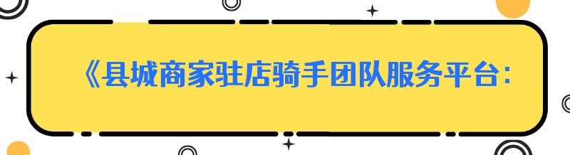 《县城商家驻店骑手团队服务平台:创业新机遇》