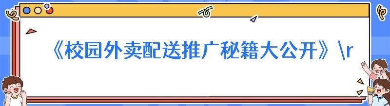 在校园这个充满活力与消费潜力的市场中,外卖配送行业正蓬勃发展。对于校园外卖配送来说,如何进行有效的推广,吸引更多学生的关注和选择,成为了关键所在。下面就为大家详细解密校园学校外卖配送的推广之道。