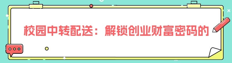 校园中转配送:解锁创业财富密码的推广秘籍