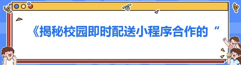 《揭秘校园即时配送小程序合作的“宝藏”技巧》