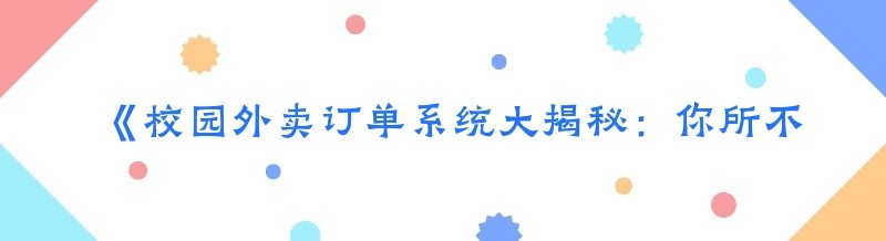 《校园外卖订单系统大揭秘:你所不知道的多元选择》