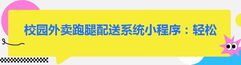 校园外卖跑腿配送系统小程序:轻松上手,开启便捷校园生活