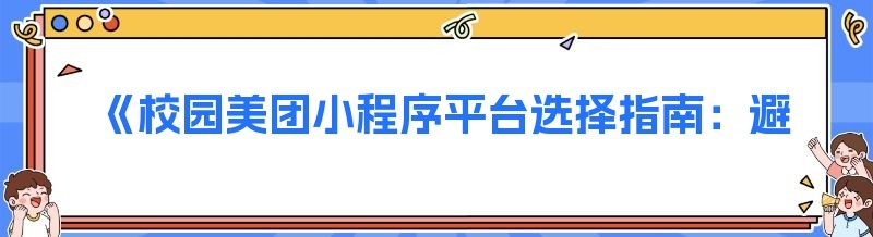 《校园美团小程序平台选择指南:避开误区,走向成功》