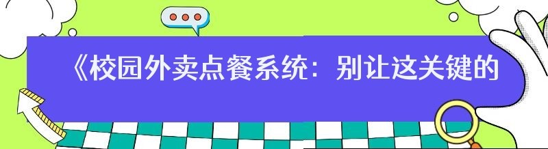 《校园外卖点餐系统:别让这关键的第一步走错!》
