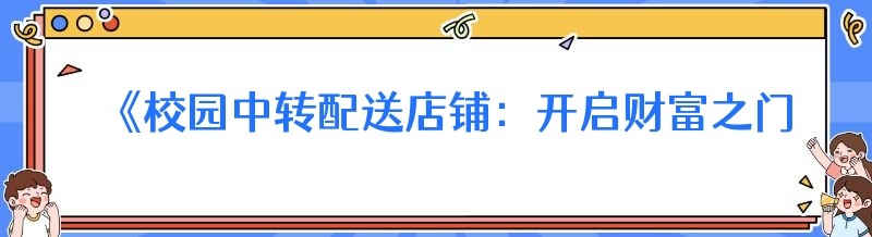 《校园中转配送店铺:开启财富之门的新钥匙》