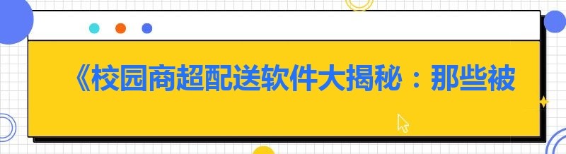 《校园商超配送软件大揭秘:那些被忽视的宝藏选择》