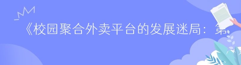 - 《探索本地校园外卖配送平台的财富密码》