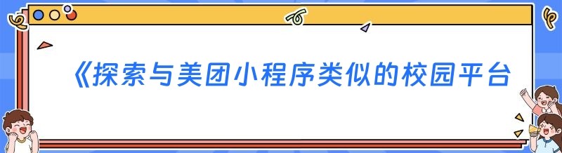 《探索与美团小程序类似的校园平台,你知道几个?》