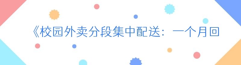 - 《校园外卖配送搭建指南:开启便捷校园生活新篇章》