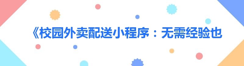 《校园外卖配送小程序:无需经验也能轻松上手的便捷利器》