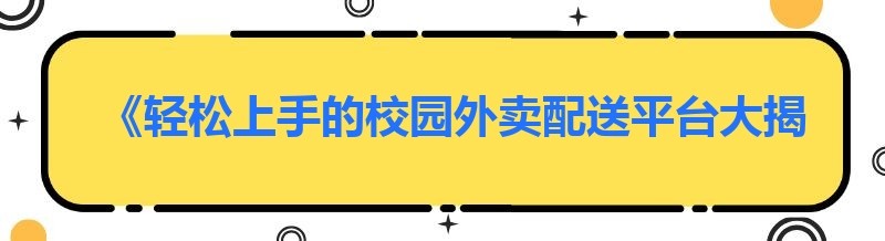 《轻松上手的校园外卖配送平台大揭秘》