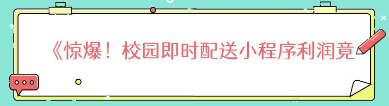 《惊爆!校园即时配送小程序利润竟如此轻松可得》